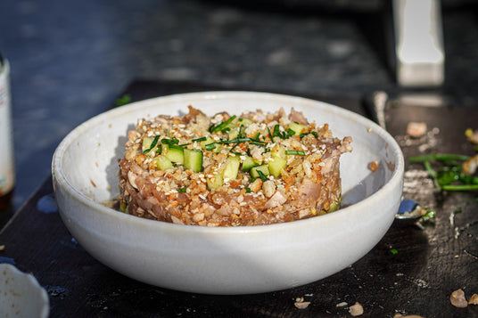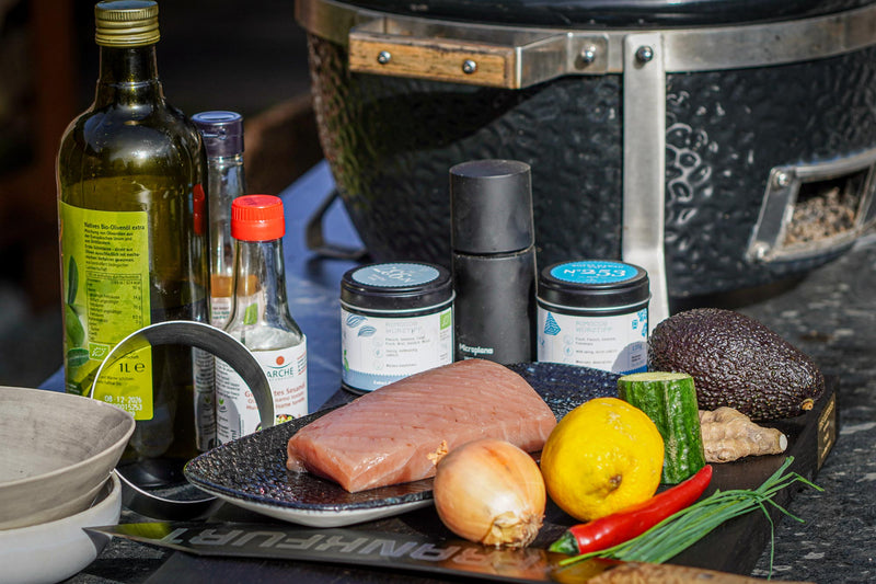 Das Tatar direkt servieren – eine schnelle und elegante Vorspeise direkt vom Grill.