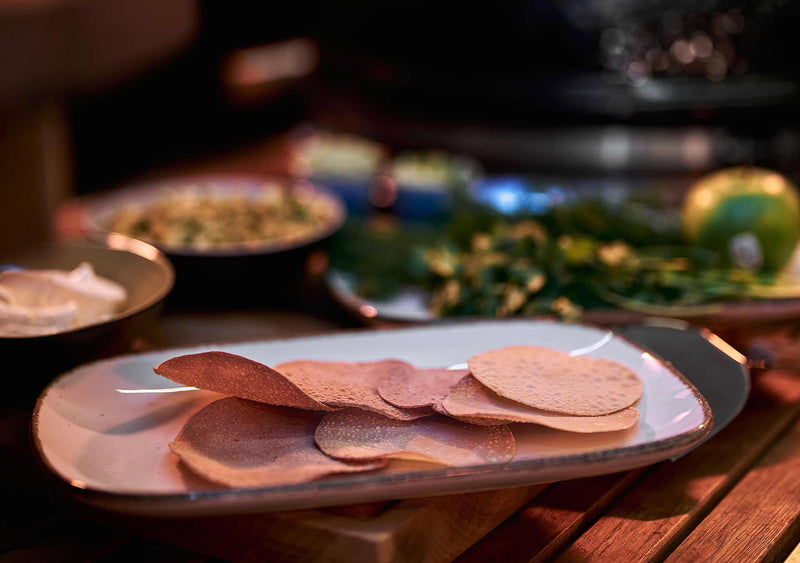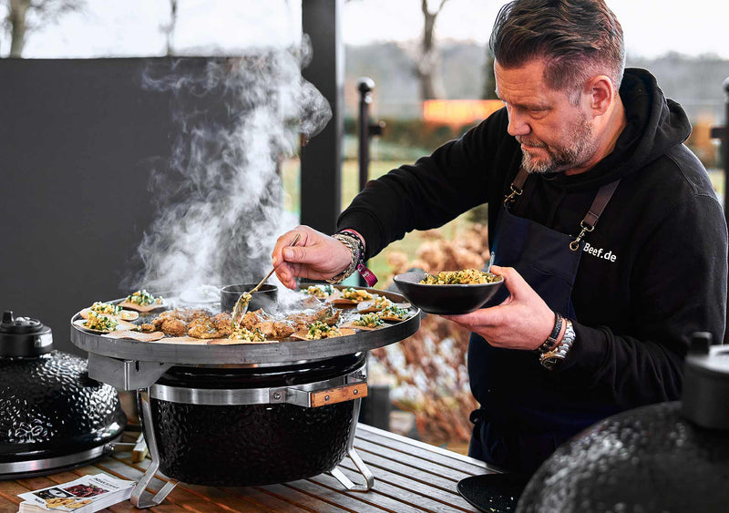 Papadam auf dem Monolith Icon knusprig ausbacken und als Basis verwenden.