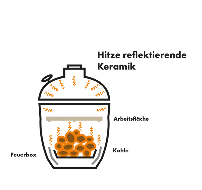 Der grundlegende Unterschied zu einem Backofen oder Gasgrill ist, dass im MONOLITH anstatt von zirkulierender Heißluft, mit der Strahlungshitze der Keramik gearbeitet wird, dadurch bleibt das Gargut deutlich saftiger.