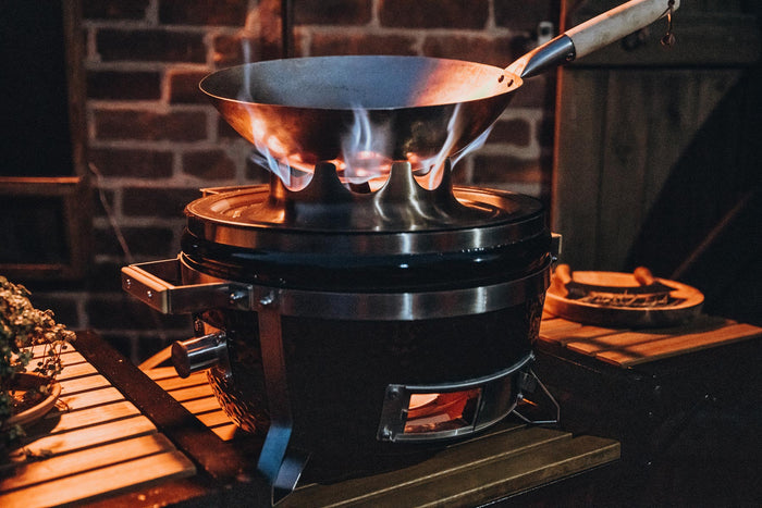Vervollständige deinen ICON durch den MONOLITH Wok-Halter direkt auf dem Feuerring. So erreichst du ganz einfach sehr hohe Temperaturen direkt im Zentrum, unter deinem Wok, für authentische Ergebnisse.