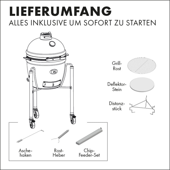 Den ICON kannst du einfach überall hin mitnehmen - mit nur 35kg und den sehr kompakten Maßen ist er ein echter mobiler Kamado Grill, für jede Gelegenheit. Deine kompakte Outdoorküche für unterwegs, im Garten oder als Balkongrill.