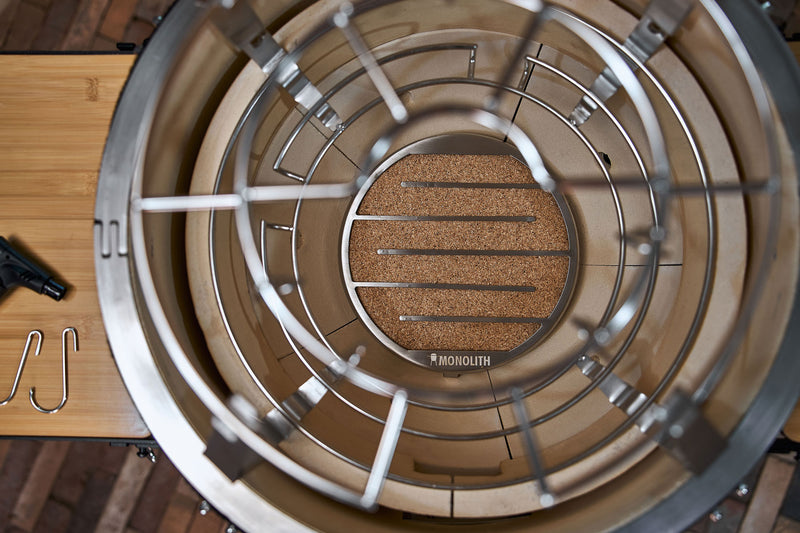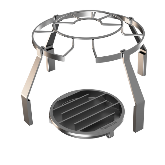 Das MONOLITH Smoke Set erweitert den Keramikgrill um eine effiziente Lösung fürs Kalt- und Heißräuchern. Der robuste Edelstahl-Aufsatz passt exakt auf das Smart Grid System und macht die Modelle .55 und .66 zu leistungsstarken Räucheröfen – mit zusätzlicher Höhe für große Stücke wie ganze Fische oder Briskets.