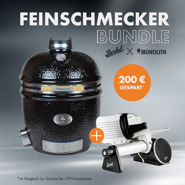 Dieses Bundle kombiniert die Freude am Grillen mit der Präzision in der Küche. Ob BBQ-Fest, Familienessen oder der tägliche Küchenalltag – mit MONOLITH TWO.55 Smart Flow und der ICON LINE Aufschnittmaschine bist du bestens ausgerüstet.